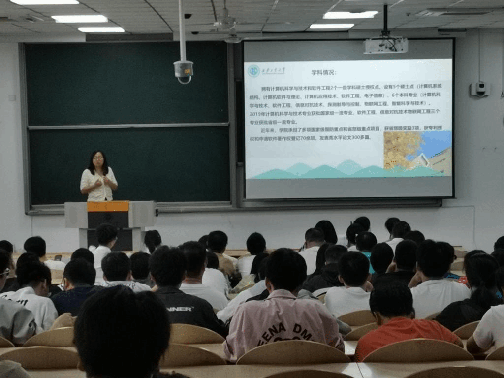 会上傅妍芳就学院的人才培养和科研团队、教育资源、科研优势、未来展望等进行了详细介绍,使学生全面了解到了学院广阔的资源平台,充足的师资力量,为学生们明确了前进的目标和方向。傅院长对比了2020级以来的研究生招生情况。根据数据显示,每年的招生名额持续增加,但是接收调剂的比例逐年下降。硕士一志愿报考增长率较上一年提升196.36%,一志愿上线人数较上一年提升202.2%,傅老师还指出,学硕相较于专硕而言,上岸压力较小。在就业方面,学院学生多次在全国“互联网+“创新创业大赛中获奖,在陕西省及全国网络安全大赛全国数模竞赛蓝桥杯大学生竞赛等比赛中取得优异成绩,毕业生主要就业单位是IT企业,军工企业,银行等,主要从事产品研发,产品测试,软件开发等。