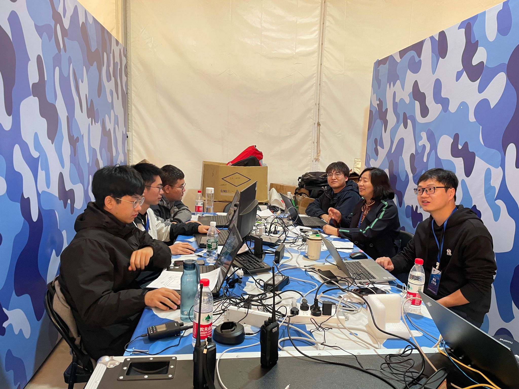 无人智能数字孪生团队与中电研究所联合团队参赛人员克服重重困难,长期坚持在试验场奋战,通过紧密的团队合作和高效的沟通协作,共同解决了诸多技术难题。团队成员针对复杂海况中多无人艇的自主导航、协同感知、目标识别和跟踪等技术进行了深入研究,并在比赛中得到充分的展示。
