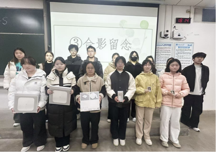 颁奖总结仪式现场,氛围热烈而温馨。主持人首先回顾了活动整体流程,详细介绍了作品征集、投票评选的相关情况,对所有参赛同学的积极参与和辛勤付出表示衷心感谢。随后,进入激动人心的颁奖环节,志愿者协会的工作人员为获奖同学依次颁发了小米电动牙刷、小米体重秤、学院定制U盘等丰厚奖品。获奖同学手持荣誉与奖品,脸上洋溢着喜悦的笑容,现场掌声不断。