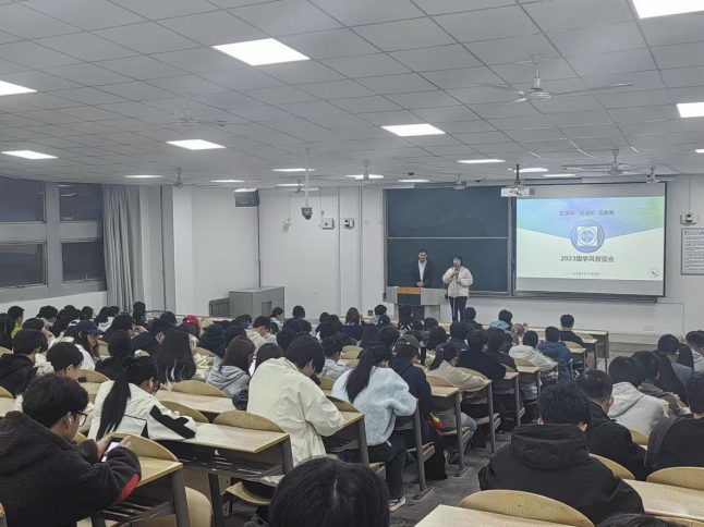 于12月8日下午,辅导员呼延晓蓉、李凯、于杰组织2023级全体学生,召开了考风考纪教育及年级大会。此次大会意义重大,犹如一场及时雨,为即将面临全国大学英语四、六级考试以及期末考试的同学们敲响了诚信考试的警钟。