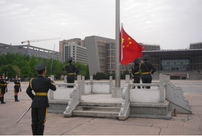 组织师生代表在经纬广场隆重观看升国旗仪式。