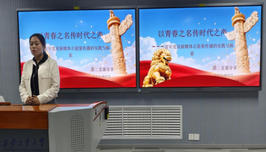 研究生第三党支部王晓峰同志则聚焦“角色转型与实践路径”,引用习近平总书记“谁掌握了互联网,谁就把握住了时代主动权”的重要论述,通过贵州青年党员陆遥修复戈壁航标、人大博士生宋扬直播助农等案例,强调传播需“扎根实践、聚焦真实”,既要用短视频、直播等青年化形式讲好故事,更要严守党纪法规,以理性态度应对网络舆情。